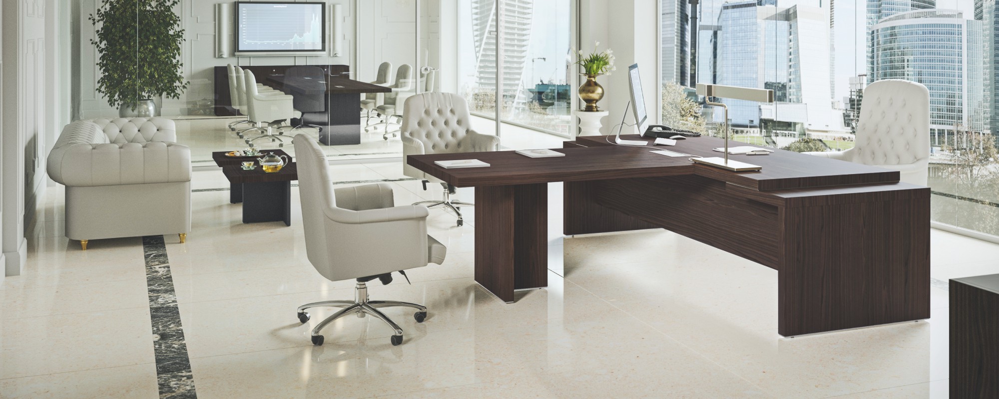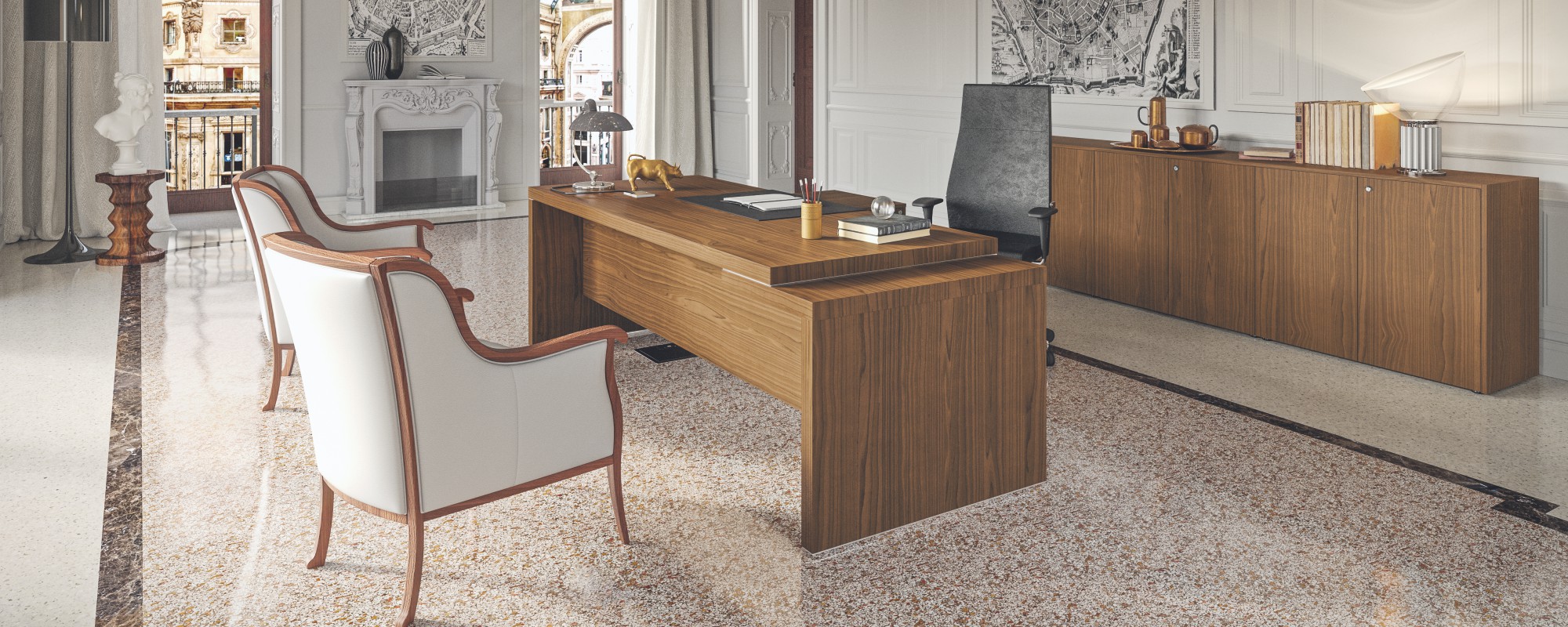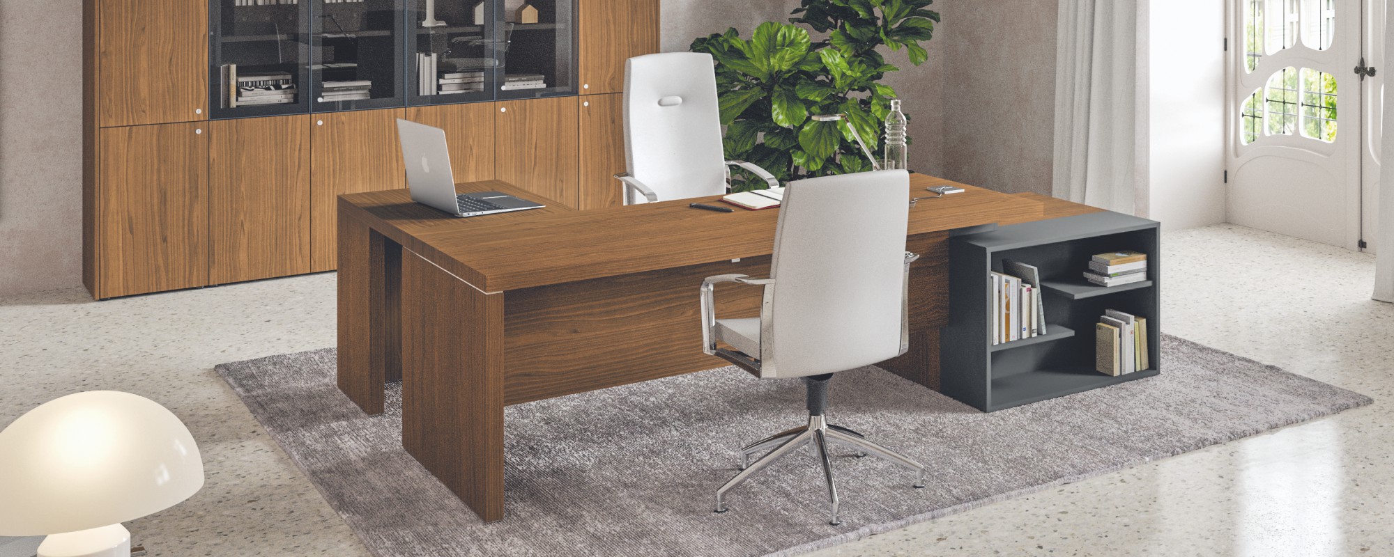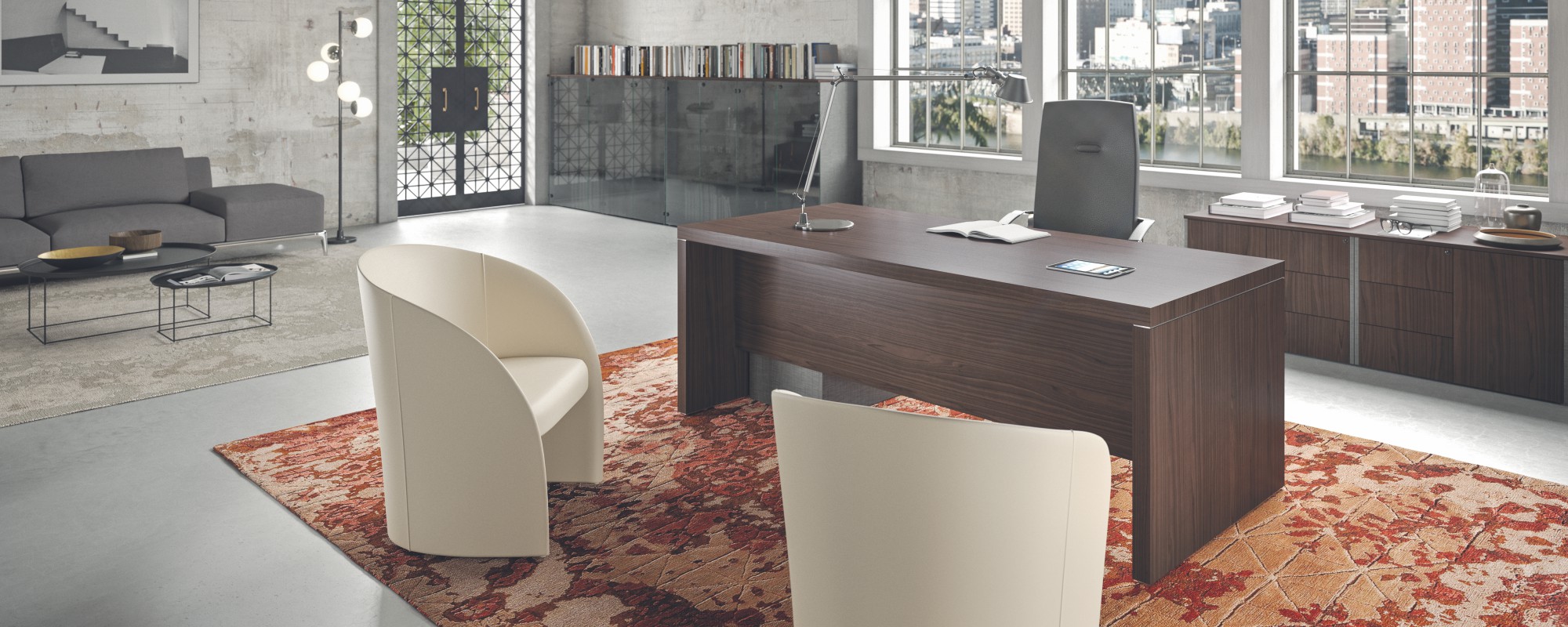Lo spazio di un ufficio dovrebbe essere confortevole e dare ispirazione come casa propria, solo con meno distrazioni. Un ufficio dovrebbe dare senso di libertà, personalizzazione e condivisione allo stesso tempo. Tocchi di colore, pop art work e semplici divisioni possono creare un ambiente privato in linea con lo spazio in cui ci si trova. Le stanze piccole sono obsolete. Nessuno vuole stare in una gabbia, confinato in 4 mq, con foto tristi appese alle pareti di un muro marroncino. Io credo che gli spazi fluidi, puliti e luminosi, promuovano una vita lavorativa attiva e a sua volta un ufficio di questo genere porta a lavorare meglio e con più grinta.